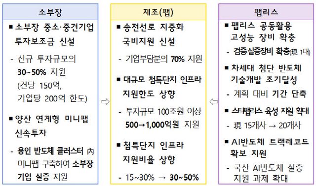 이를 위해 ‘필수 추가경정예산안’(추경안)에 총 5000억원의 예산을 반영했다. 이는 △인프라 구축 △소재·부품·장비(소부장) 투자 지원 △차세대 반도체 개발 △우수 인재 확보 등에 쓰일 예정이다.