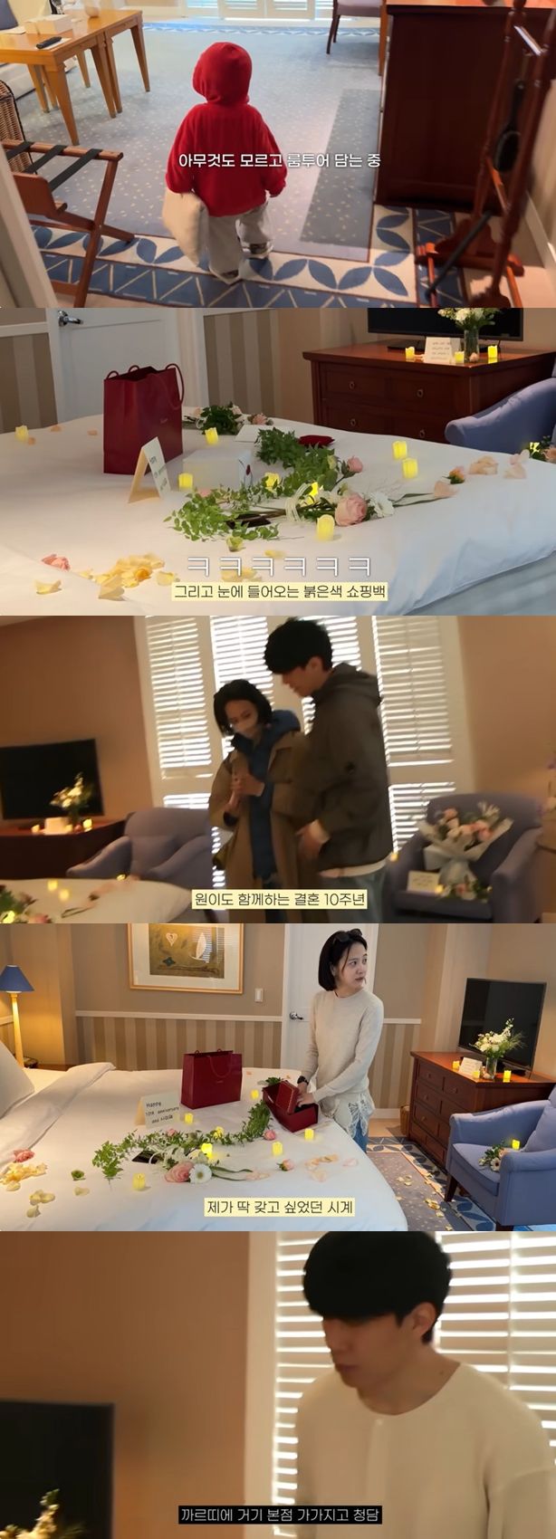 해당 이벤트는 김무열이 결혼 10주년을 기념하기 위해 준비한 것으로, 침대 위에는 편지와 함께 명품 시계가 놓여 있었다.