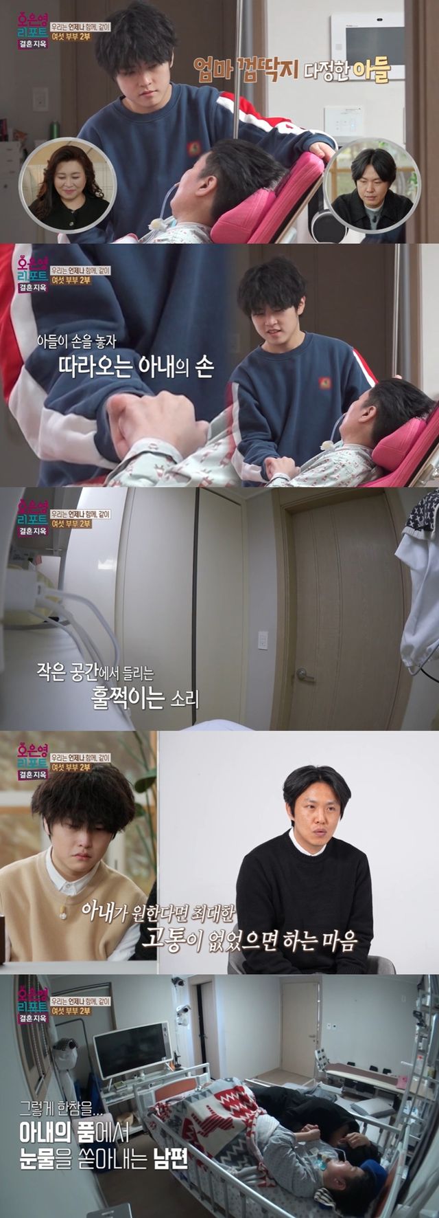 (엑스포츠뉴스 김보민 기자) '여섯 부부'의 첫째 아들이 식물인간 엄마에게 말을 건네는 모습이 포착됐다.