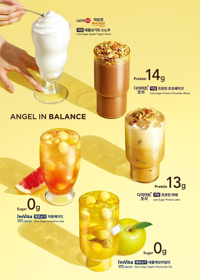 이와 함께, 락토핏 마시는 유산균 원료를 활용 및 저당 사과베이스로 맛을 살린 '저당 애플요거트 스노우'와 다이어트코치 원료를 활용해 가볍게 한 잔 즐길 수 있는 '저당 프로틴 초코쉐이크', '저당 프로틴라떼'도 출시한다.