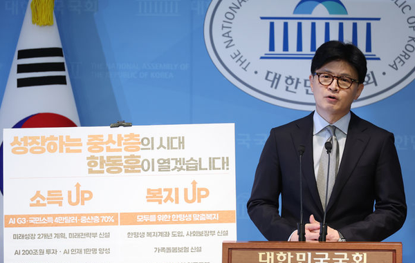 한 전 대표는 "한동훈의 보수는 실용적이고 혁신적인 자세로 문제를 반드시 하나하나 풀어가겠다"며 "그 출발점이 바로 중산층 복원이고 강화다. 이는 곧 경제 안보, 사회적 가치, 혁신 경제로 확장될 것"이라고 말했다.