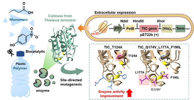 식물벽을 분해하는 곰팡이(Thielavia terrestris)에서 추출한 큐티나아제의 유전서열을 변형해 열 안정성과 낮은 pH(수소 이온 농도 지수) 내성을 갖도록 개량했다.