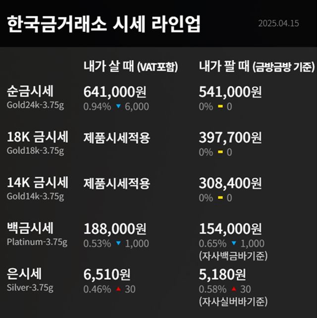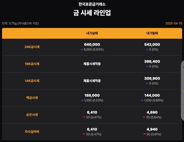 순금(24K) : 매입가 63만 5000원 / 매도가 54만 5000원