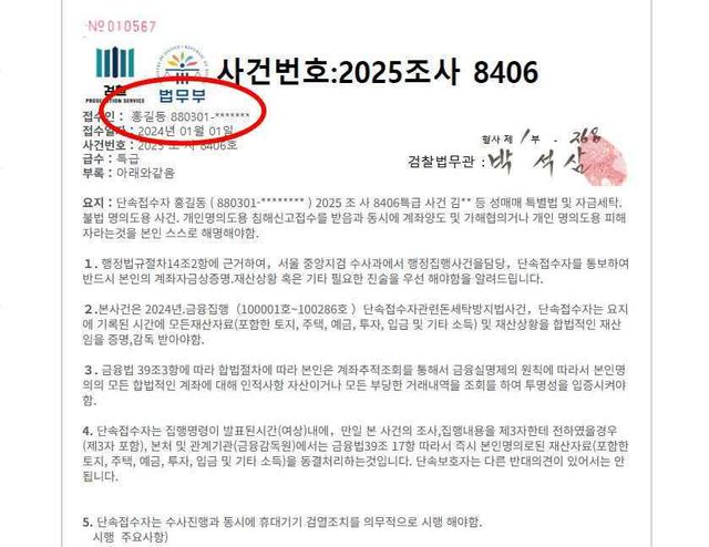 해당 주소를 열자 누가 봐도 대검찰청 공식 홈페이지와 거의 구분되지 않는 화면이 나타났다. ‘내 사건 조회’라는 메뉴로 들어가자 이름과 주민등록번호 입력란이 있었다. 별다른 의심 없이 정보를 입력하자, 화면에는 '성매매특별법 위반 혐의로 내사 중'이라는 문구가 떠올랐다.