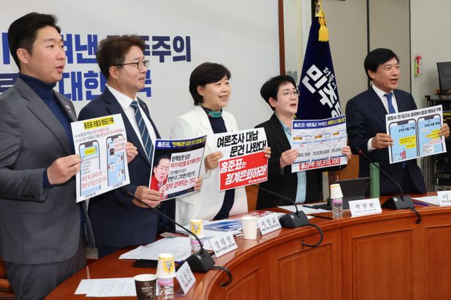 민주당 명태균게이트 진상조사단은 15일 국회에서 기자회견을 열고 홍 전 시장과 명씨가 나눈 카카오톡 대화를 공개하며 "지금까지 '그런 사기꾼과 엮일 리 없다'며 강하게 부인해왔지만 모두 새빨간 거짓말임이 확인됐다"고 주장했다.