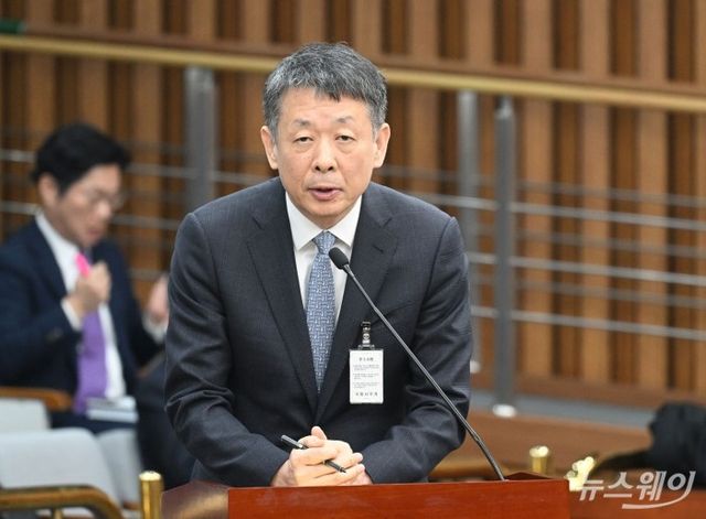 김광일 MBK 파트너스 부회장 겸 홈플러스 공동대표가 지난달 18일 오전 서울 여의도 국회에서 열린 정무위원회 '홈플러스·MBK 파트너스 및 삼부토건'에 대한 긴급 현안질의에 증인으로 출석해 강훈식 더불어민주당 의원의 질의에 답변하고 있다. 사진=국회사진취재단