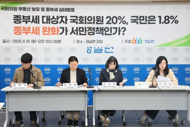 경실련 관계자는 "종부세 완화가 서민 감세라고 주장하지만, 혜택은 국민이 아니라 일부 정치인 등 상위 1%가 크게 누리고 있다고 볼 수 있다"고 말했다.