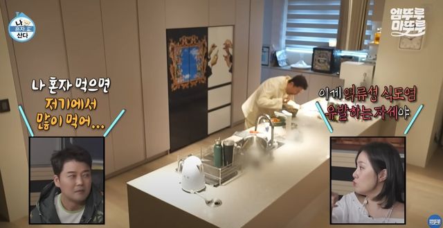 요리를 마친 전현무는 식탁에 앉지 않고 서서 식사를 시작했다. 이를 본 박나래가 “왜 서서 먹냐”고 묻자, 전현무는 “혼자 먹을 땐 저기에서 많이 먹는다”고 답했다. 박나래가 “이게 역류성 식도염 유발하는 자세다”라고 말하자, 그는 “왜 안 알려줬냐”며 놀란 반응을 보였다.