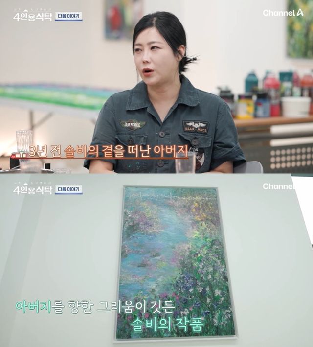 솔비는 "아빠한테 그림을 보여주고 싶다. 이 그림을 못 보고 돌아가셨다"며 아버지를 향한 그리움이 깃든 작품을 소개했다.