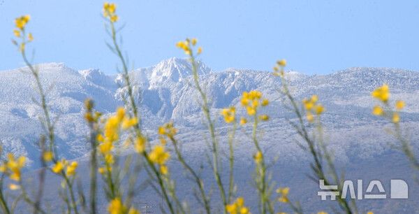 [서울=뉴시스] 평년보다 기온이 낮은 15일 오전 제주 한라산에 하얀 눈이 쌓이고, 상고대가 피어나 봄 계절 속 겨울 정취를 자아내고 있다.