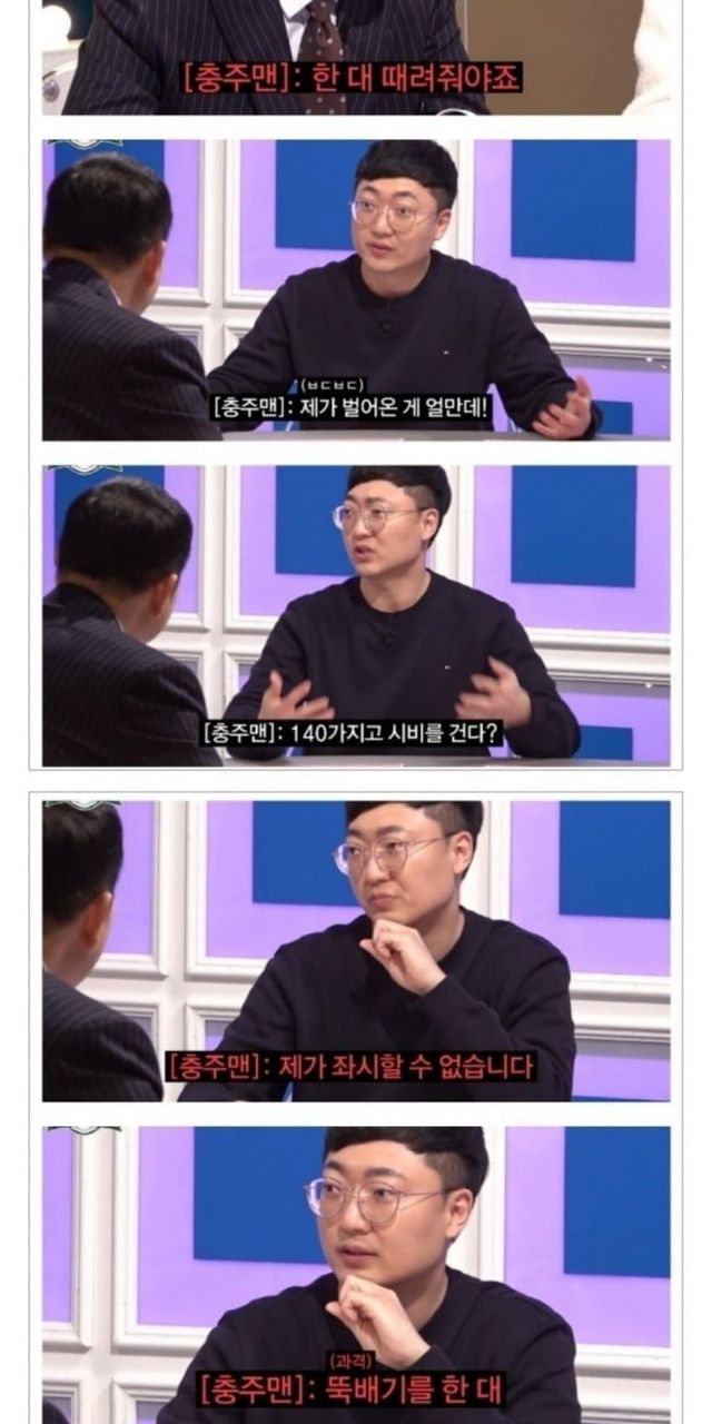 충주맨, "빠니보틀 섭외 건으로 세금 타령하면 뚝배기 깰 것"