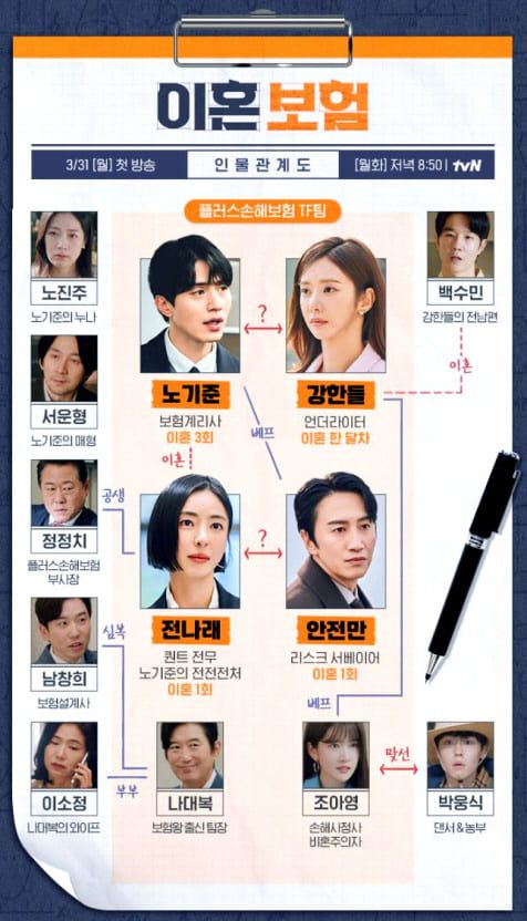 tvN의 새 월화극 '이혼보험'이 이혼 보험이라는 파격적인 주제를 바탕으로 안방극장에 강렬한 첫 인상을 남겼습니다. 이에 '이혼보험' 인물관계도, 등장인물, 줄거리, 재방송 ott, 출연진, 몇부작, ost, 촬영지가 모두 화제를 모으고 있습니다.