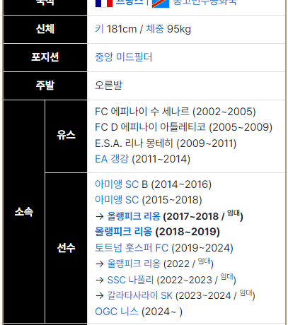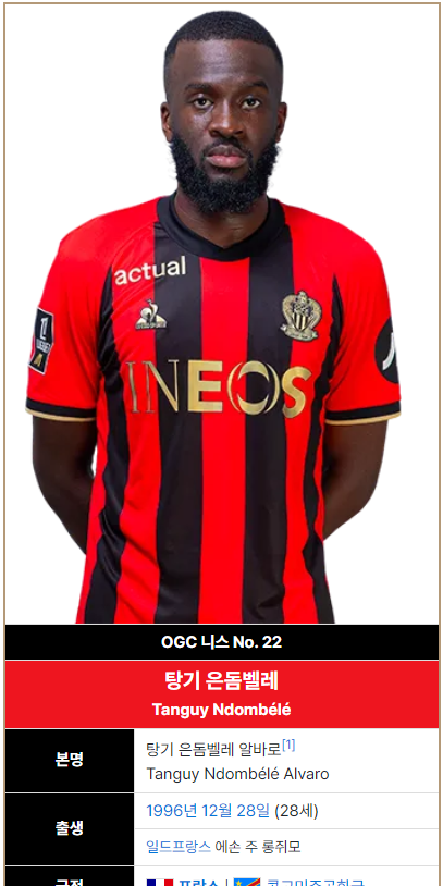탕기 은돔벨레 / 1996년생 / 토트넘 홋스퍼 (2019~2024) / 현재 니스