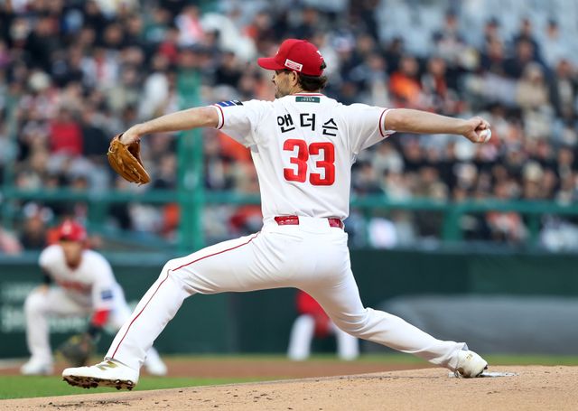 실점은 오로지 딱 한 차례만 허용했다. 앤더슨은 1회 선두 타자 이진영에게 내야안타를 내줬고, 후속 에스테반 플로리얼에게도 우전 안타를 맞아 실점 위기에 몰렸다. 3번 타자 문현빈을 유격수 앞 땅볼로 잡아냈다. 병살타가 가능한 타구였지만, 2루수 정준재의 1루 송구가 조금 빗나간 게 화근이 됐다. 이진영의 득점은 병살 여부와 별개로 이뤄졌으나 이후 두 타자를 더 상대한 후에야 1회를 마쳤다.