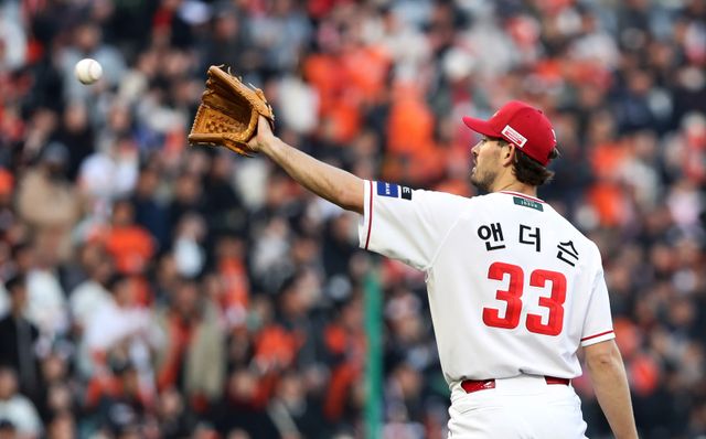 3회 초에도 선두 타자 플로리얼을 빠른 공 헛스윙 삼진으로 돌려세운 앤더슨은 삼자범퇴로 이닝을 마친 뒤 4회 초 선두 타자 김태연에게도 헛스윙 삼진을 얻었다. 이번엔 5구 연속 직구로 1볼 2스트라이크를 만든 뒤 슬라이더와 커브를 결정구로 썼다. 이어 채은성에게 볼넷을 내준 1사 1루 땐 다시 황영묵에게 강속구로 헛스윙 삼진을 더했다. 무실점을 이어간 앤더슨은 5회 역시 플로리얼과 문현빈에게 모두 헛스윙 삼진을 솎아냈다.