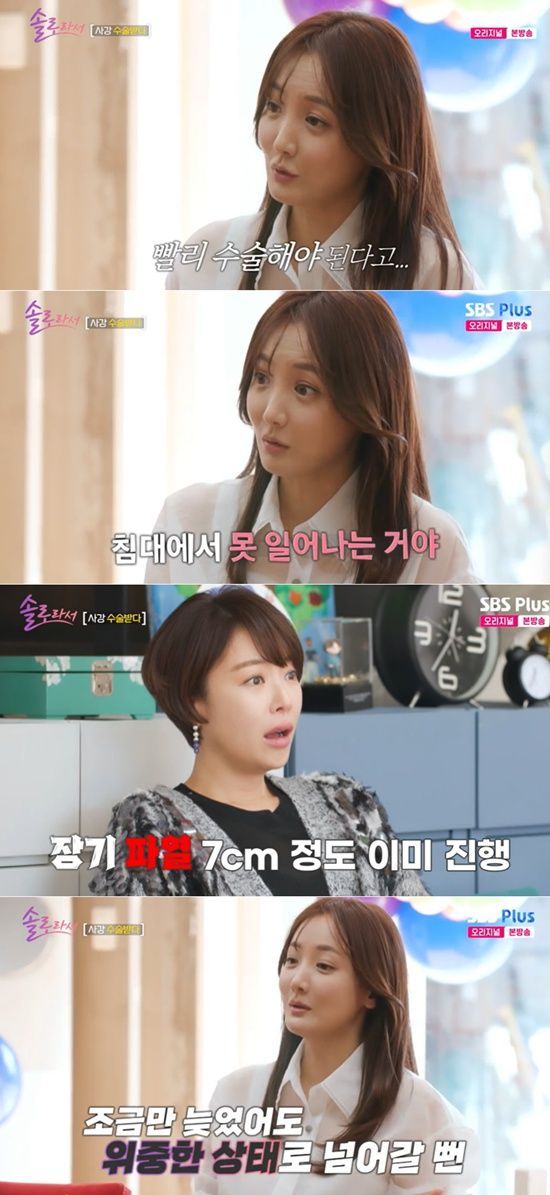 이어 "수술 날짜를 잡고 입원하러 가는 날 아침, 침대에서 도저히 일어날 수 없었다. 나중에 알고 보니 안에서 장기가 파열된 상태였고, 무려 7cm 정도가 터진 상황이었다. 파열된 장기가 안에서 휩쓸고 다닌 상태였다"며 당시의 급박했던 상황을 전했다.
