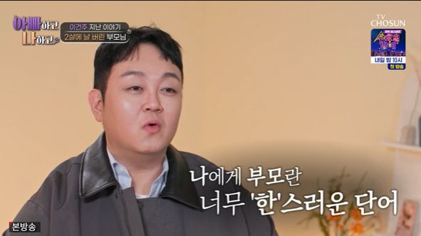이건주는 자신에게 부모란 "너무 한스러운 단어"라고 말하며 눈물을 보였다.