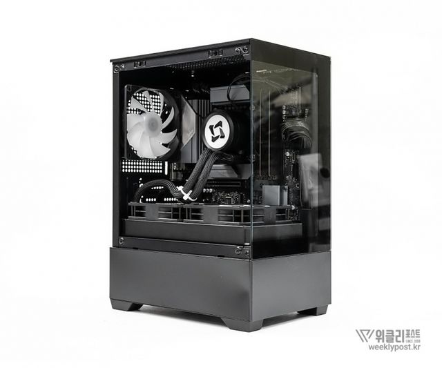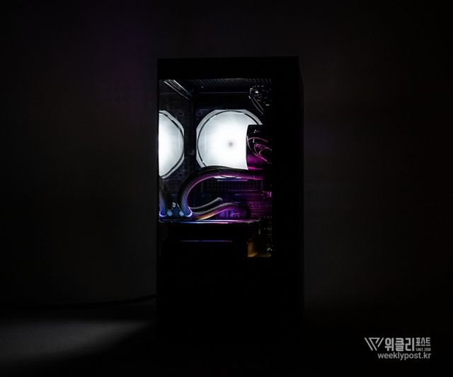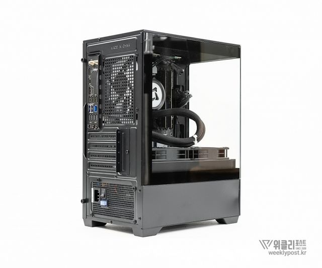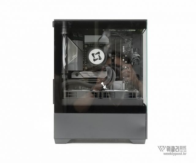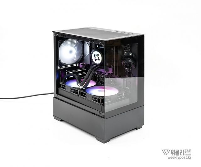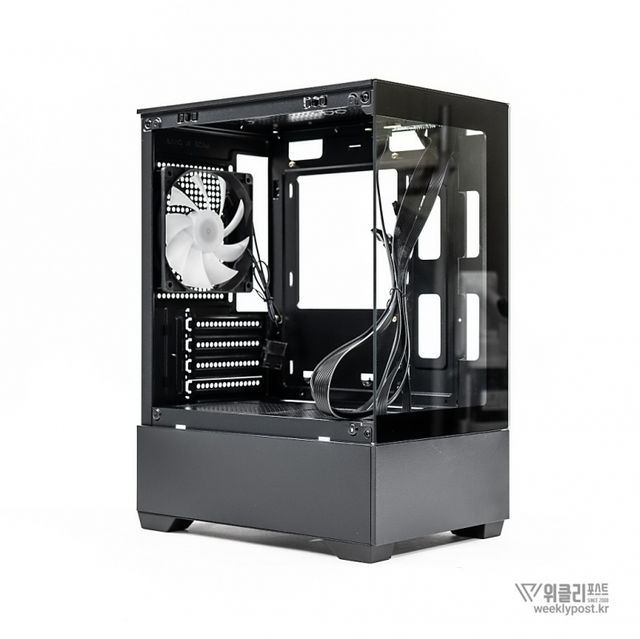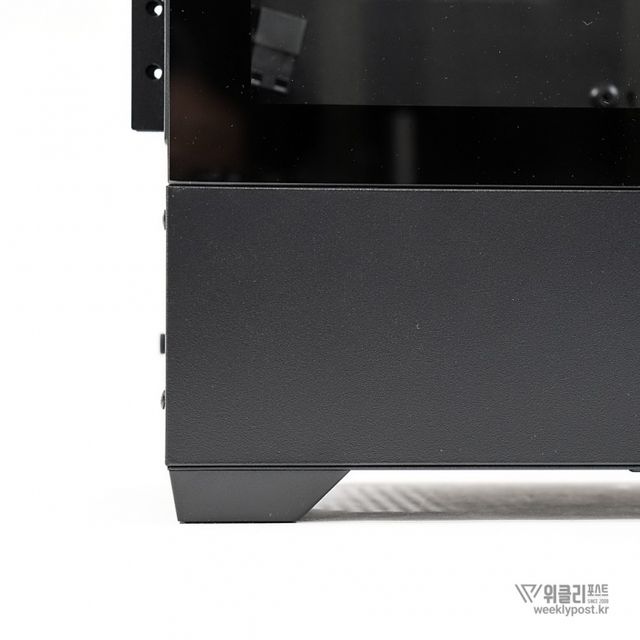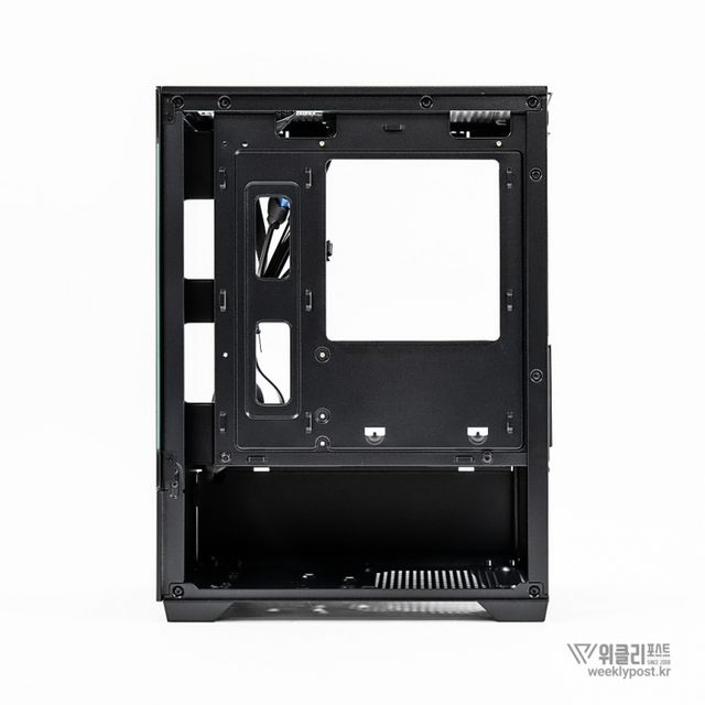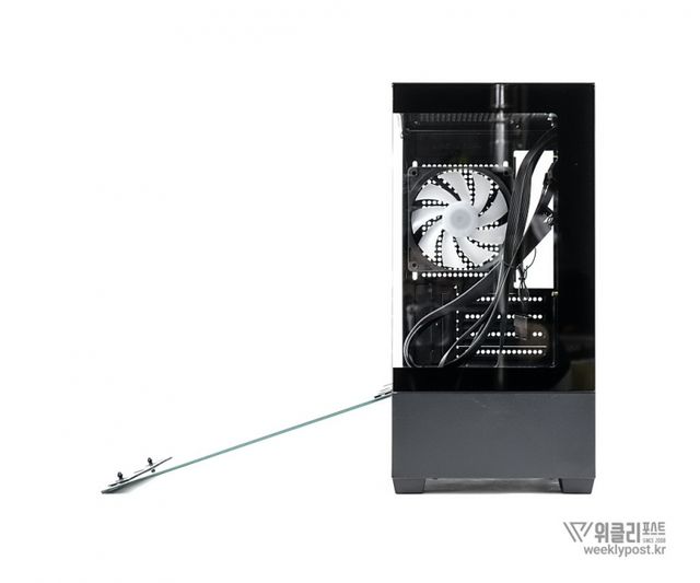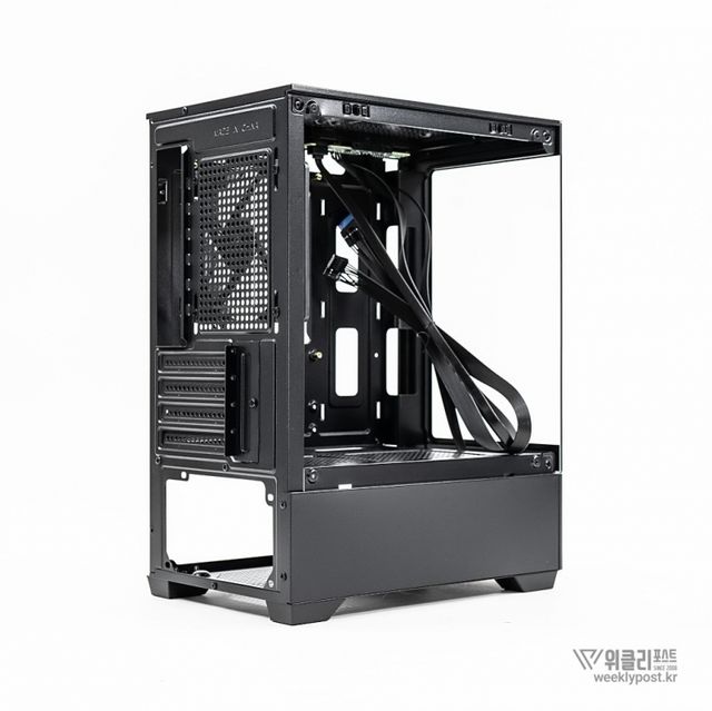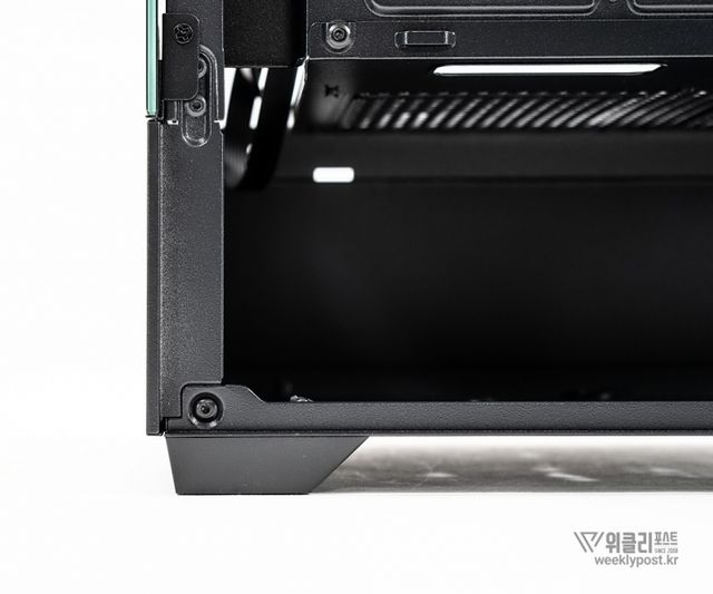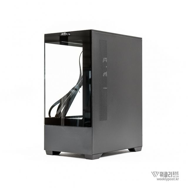 특징은 요즘 트렌드에 맞춰 전면과 측면이 확 트인 강화유리로 된 2면 파노라믹 글라스. 금속 프레임 안쪽에 마련된 매우 넓은 파노라믹 뷰는 개방감이 돋보이며 시스템 내부부품의 작동상황을 쉽게 확인할 수 있다. LED 등으로 화려한 튜닝효과를 내면 보는 재미까지 잡을 수 있는 우수한 형태다.