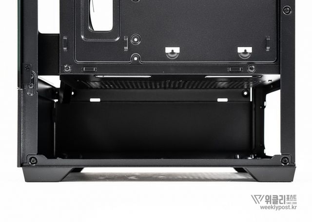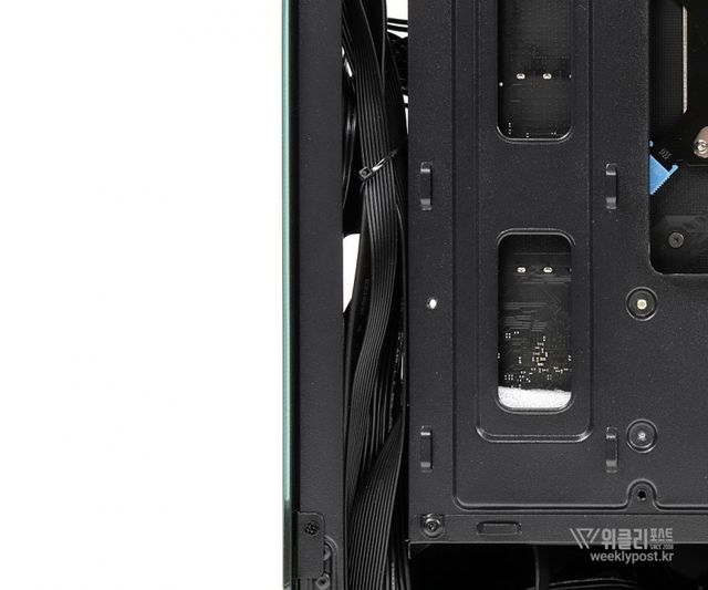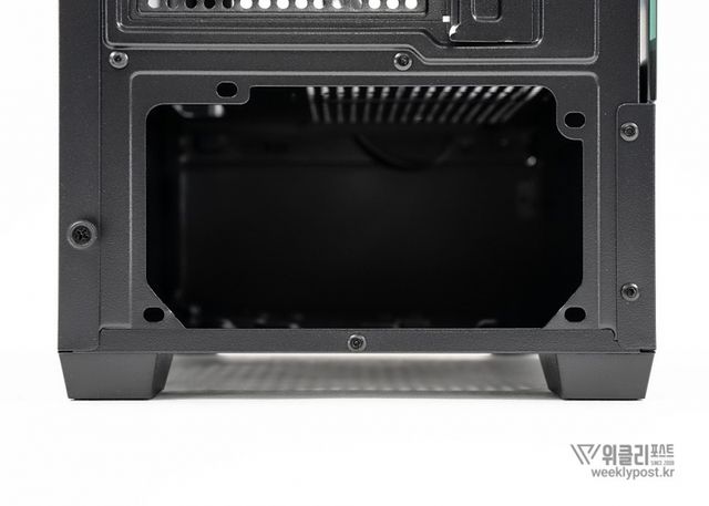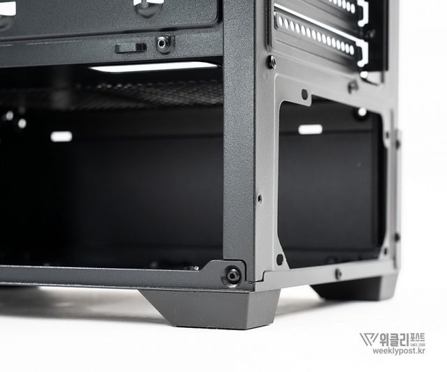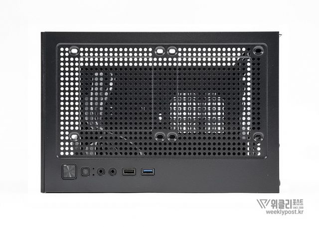 파워 다음에는 체력이다. 얼마나 강력한 부품을 장착할 수 있는가? 확장성을 보자. 메인보드는 M-ATX, ITX 두 가지와 모두 호환되며 미니타워 케이스로는 준수한 확장성이다. 파워서플라이는 ATX 규격까지 허용되며 최대 길이 140mm까지 장착 가능하다. 내부 발열을 제어하기 위해 측면에는 통풍구가 마련되었다.