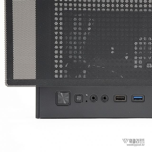 입출력 포트는 상단 위쪽부터 USB 3.2 Gen1 포트, USB 2.0 포트, HD 오디오 입력, HD 오디오 출력, 리셋 버튼, 전원 버튼의 순서로 탑재됐다. 최신 기술을 적용해 매우 빠른 전송속도를 보여주는 USB 3.2 Gen1 포트는 외장 저장장치와의 입출력 등에 쓰면 좋다. 범용성이 아주 좋은 USB 2.0 포트는 각종 게임 콘트롤러, 확장 기기 등에 쓸 수 있다.