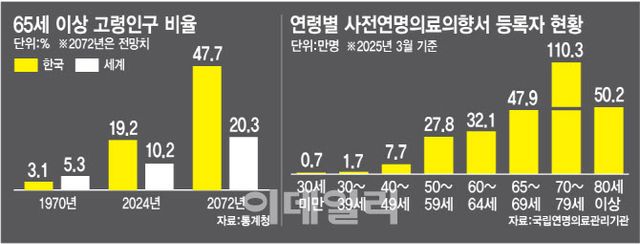행정안전부 주민등록인구통계에 따르면 2025년 기준 65세 이상 인구는 1041만명으로 전체 인구의 약 20%를 차지한다. 통계청은 고령화가 가속화되면서 2036년에는 고령 인구 비율이 30.9%, 2050년에는 40%를 초과할 것으로 전망했다. 이에 따라 웰다잉은 더는 선택이 아닌 필수적 고민이 되고 있다.