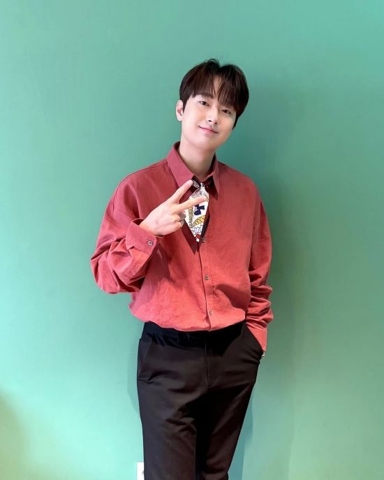 사진 속 그는 카메라를 바라보며 한 손 브이 포즈를 취하고 있다.