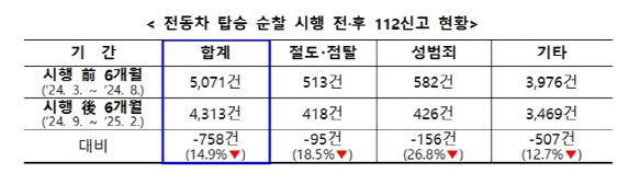 경찰은 다양한 예방활동과 데이터 활용이 지하철 내 절도를 줄였다고 분석했다. 서울청 지하철경찰대는 지난해 9월부터 야간 전동차에 탑승해 내부를 순찰하고 있다. 전동차 탑승 전 6개월과 이후를 비교할 때 112신고는 15% 감소했다. 아울러 경찰은 지난해 9월부터 지난 2월까지 6개월간 주취자 보호와 노약자·외국인 봉사활동 등 합동 순찰 활동을 강화했다.