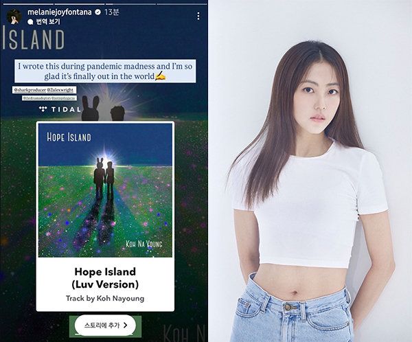 고나영은 지난 3월 신곡 ‘Hope Island’(호프 아일랜드) 음원을 발표하며 글로벌 SNS를 통해 인기를 얻으며 호응을 이끈 가운데 이 곡의 작곡가 멜라니 폰타나가 최근 자신의 인스타그램을 통해 곡 공개 소식을 전했다.