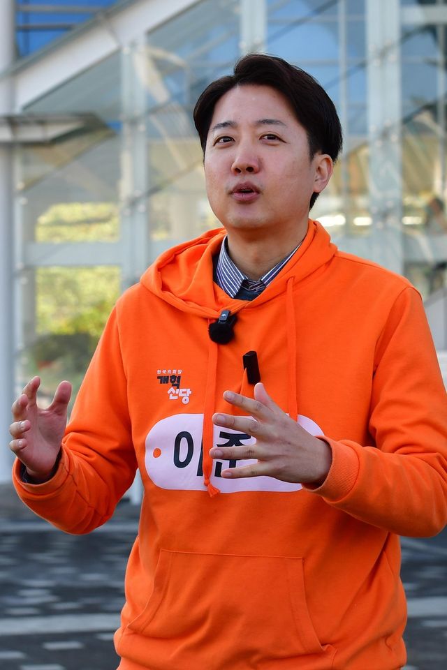개혁신당 대선주자인 이준석 의원이 15일 경북 포항역에서 지역 현안 등에 대한 입장을 밝히고 있다. / 뉴스1