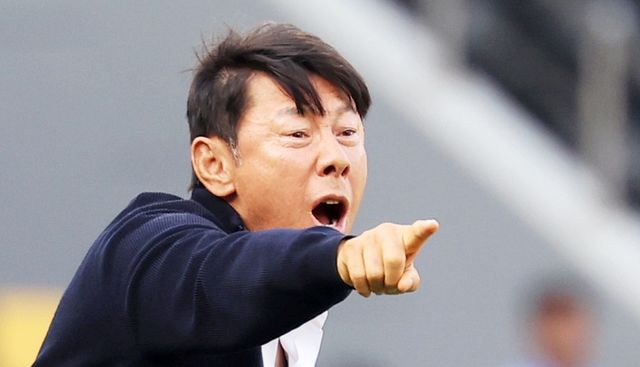신태용 전 인도네시아 축구대표팀 감독 자료 사진. 신 감독이 지난해 1월 카타르 도하 자심 빈 하마드 스타디움에서 열린 2023 아시아축구연맹(AFC) 카타르 아시안컵 16강전 인도네시아와 호주의 경기에서 선수들에게 작전 지시를 하고 있다. / 뉴스1