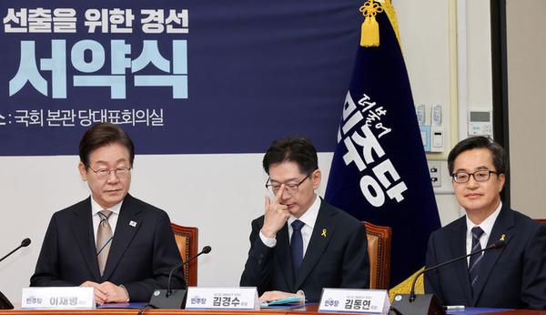 이재명 후보는 협약식에서 "희망이 있는 나라를 위해 이번 선거에서 민주당 후보들은 반드시 누가 되든 이겨야 한다"고 강조했다.