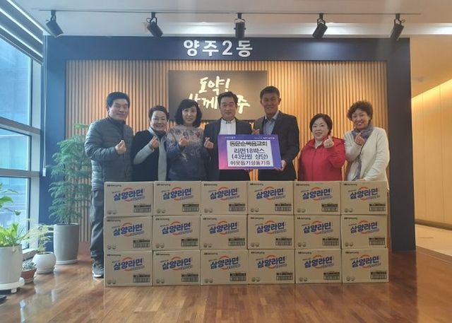 [와이뉴스] 양주시 양주2동이 최근 관내 고읍동에 소재한 동문순복음교회에서 어려운 이웃을 돕고자 라면 18박스(환가액 43만 원 상당)를 기부했다고 16일 밝혔다.