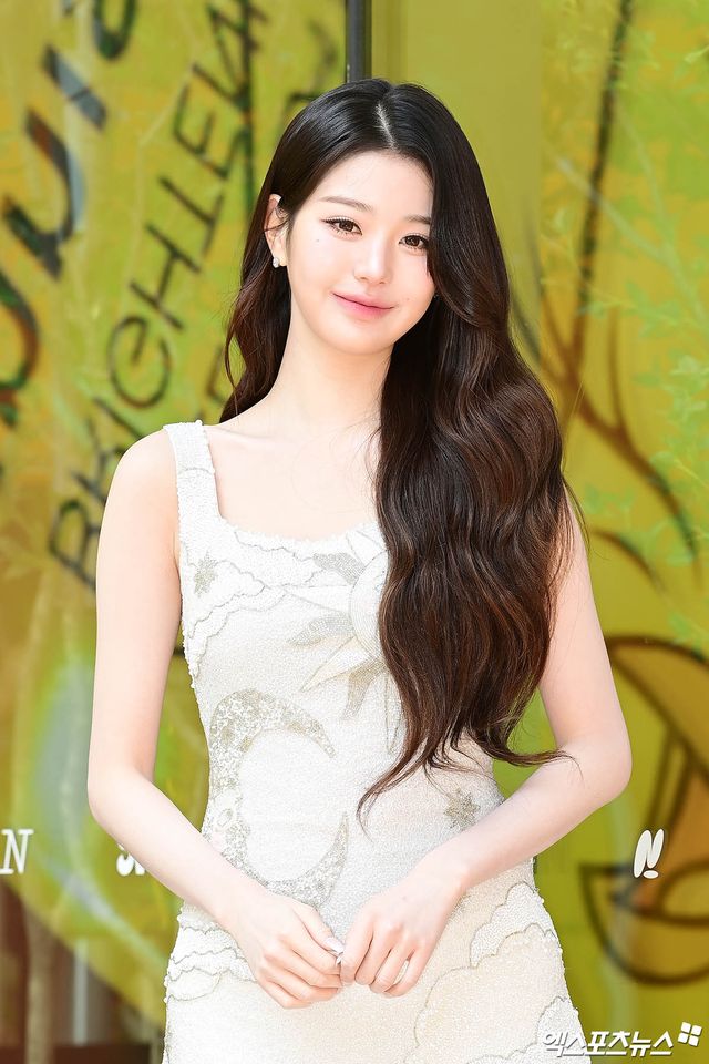 이날 장원영은 해와 달, 별 자수가 새겨진 화이트 시스루 미니드레스를 착용해 몽환적인 분위기로 시선을 단번에 사로잡았다.