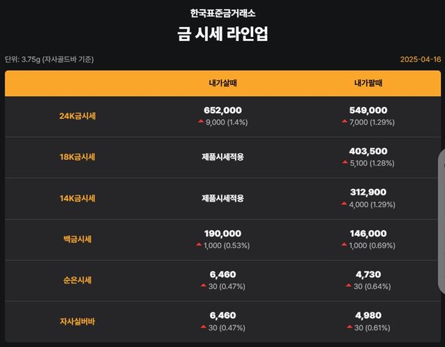 순금(24K) : 매입가 65만 3000원 / 매도가 54만 8000원