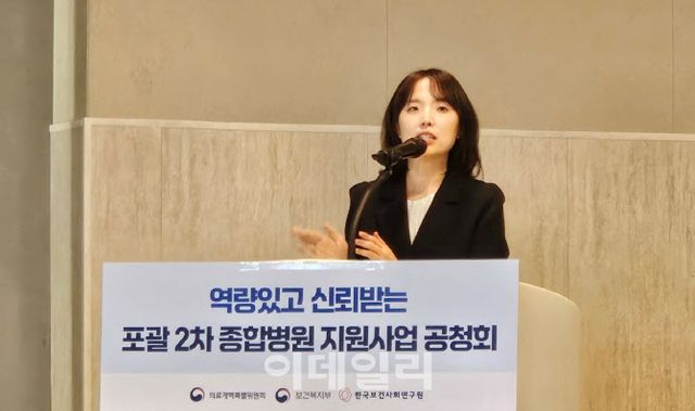 유정민 보건복지부 의료체계혁신과장은 16일 서울 프레지던트호텔에서 진행된 ‘포괄 2차 종합병원 지원사업 공청회’에서 사업 추진 계획을 발표했다. 이날 공청회는 대통령 직속 의료개혁특별위원회 주최로 열렸다.