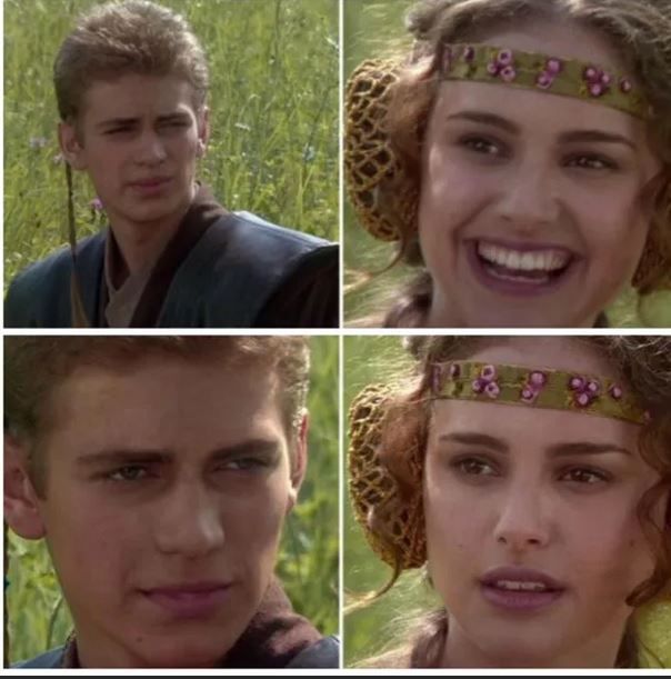 그 말을 들은 파드메는 “그건 독재를 의미하는 것 같다”며 웃으며 넘기려 하지만 아나킨은 “그렇게 해서라도 잘된다면 그렇게 해야 한다”고 말했다. 그러자 파드메는 얼굴이 굳는다. 순식간에 똥씹은 표정이 된 파드메의 반응이 아직도 잊혀지지 않는다. 어렸을 때는 그냥 아무 생각 없이 봤는데 지금 돌이켜보니 시사하는 바가 크다.