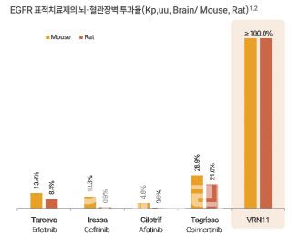회사 측은 “VRN11이 경쟁 물질 대비 EGFR 돌연변이 선택성이 높고 뇌투과율이 100% 수준에 달하기 때문에 임상 1/2상 개발 후에 글로벌 메가딜이 가능할 것”이라고 기대했다.