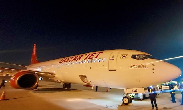 2023년 10월 28일 오후 김포공항에서 도착한 이스타항공 9호기(HL8546). / 뉴스1