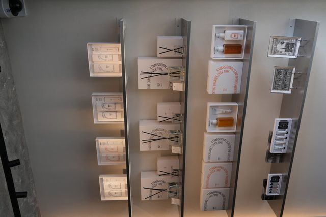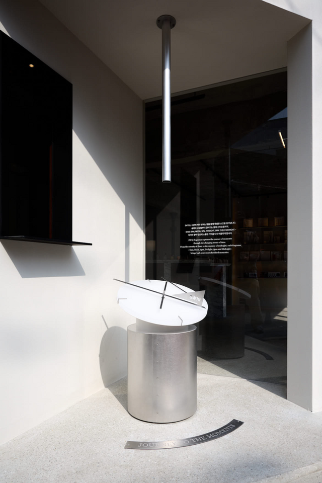 SW19 성수 매장에서 가장 먼저 눈에 띄는 건 바로 타임피스. 이 장치는 빛과 그림자의 움직임에 따라 매 순간 다른 모습을 만들어내는데요. 이는 시간의 흐름에 따라 향이 변하는 SW19의 철학을 시각적으로 표현한 장치로, 브랜드의 아이덴티티를 직관적으로 보여주는 요소죠.