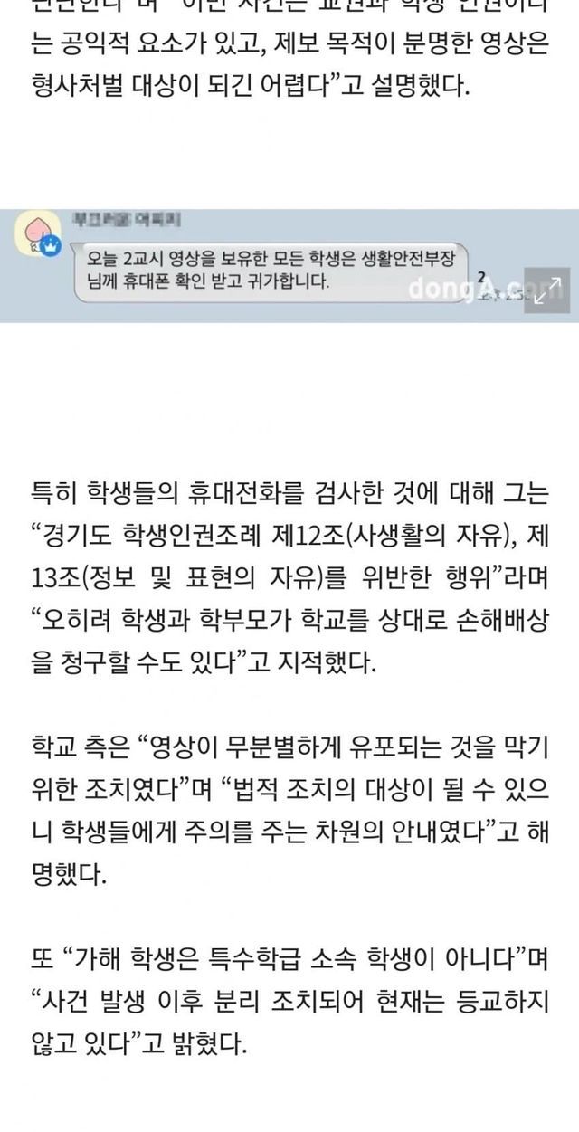 "교사 폭행 영상 지워라" 폰 검사한 학교 논란