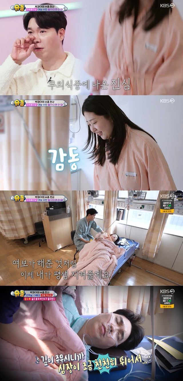 박수홍은 잠결에도 "아내가 처음이라 (잘 부탁한다)", "아내는 괜찮냐, 나왔냐"는 말을 반복하며 사랑꾼 면모를 뽐냈다.