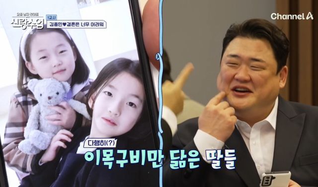 10살, 8살인 김준현의 두 딸은 본 김종민은 "너무 예쁘다. 너무 귀엽다"며 눈을 떼지 못했고 "살 빼고 얼굴(이목구비)만 닮았다"고 덧붙였다.