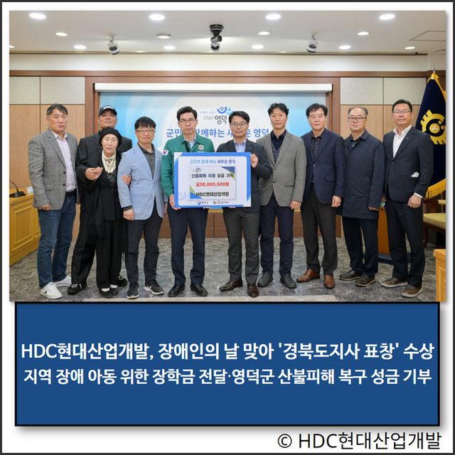 HDC현대산업개발(이하 HDC현산·294870)이 2025년 장애인의 날을 맞아 경상북도 도지사 표창패를 수상, 지역 사회에 대한 지속적인 기여를 다짐했다.