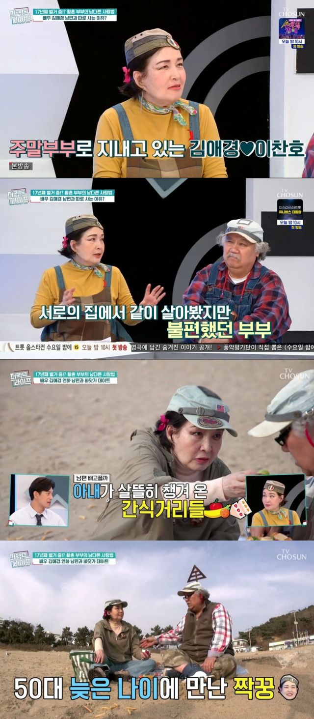 16일 방송된 TV조선 '퍼펙트 라이프'(이하 '퍼라')에는 '원조 콧소리 여왕' 배우 김애경과 그의 남편 이찬호가 동반 출연해 여전히 꿀 떨어지는 모습을 공개했다.