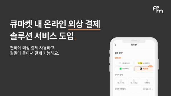 ‘페이먼스’ 운영사인 파이노버스랩은 외상매출채권 양수도 절차를 활용한 선정산 방식을 통해, 큐마켓에 미수 리스크 없는 외상 결제 서비스를 API로 제공하고 있다. 이로써 외식사업자들은 큐마켓을 통해 보다 안전하고 간편한 외상 거래를 이용할 수 있게 됐다.