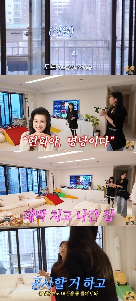 홍현희의 집 거실에서는 탁 트인 도로가 보여 눈길을 끌었다. 홍현희는 "오은영 박사님이 오시더니 '현희야 명당이다'라고 하셨다"고 자랑했다. 이에 장영란은 "사장님들이 대박치고 나간 집이다. 돈이 싹 들어오는 거다. 현희랑 제이쓴도 이 집에서 너무 잘 됐다"고 강조했다.