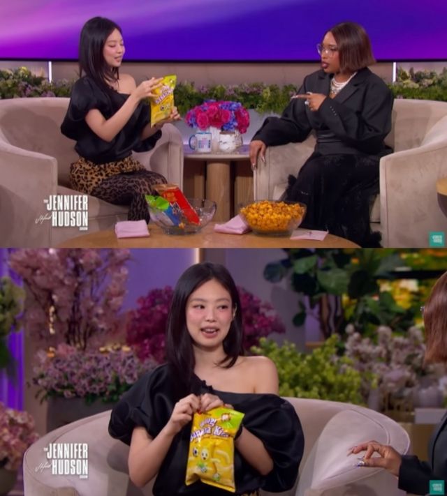 지난달 10일(현지 시각) 미국의 인기 토크쇼인 ‘제니퍼 허드슨 쇼(Jennifer Hudson Show)’에 출연한 제니는 자신이 가장 좋아하는 한국 과자로 농심 새우깡, 바나나킥, 오리온 고래밥 등을 소개했다.
