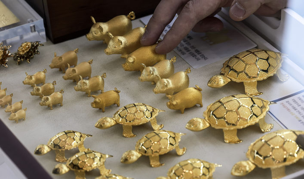 17일 한국금거래소에서 전일 기준 순금 한 돈(3.75g) 가격은 65만6000원으로 사상 최고치를 기록했다. 최근 금 한 돈 가격은 한 달간 8.42% 올랐고, 전년 동월 대비로는 무려 57% 가량 뛰었다.