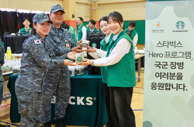 스타벅스는 히어로 프로그램을 위해 제일 먼저 국방부와 2024년 9월 협약을 맺고 △국군장병 51만 명 대상 아메리카노 쿠폰 제공 △전방 부대 방문 음료와 푸드 전달 △취업박람회 참여 및 취업 상담 등을 지원하고 있다.