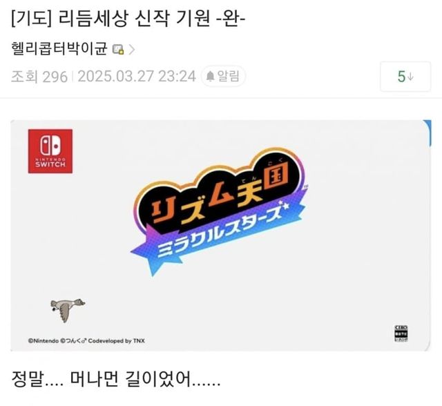 설명) 방금전 닌텐도 다이렉트에서 리듬세상 신작이 10년만에 발표됨